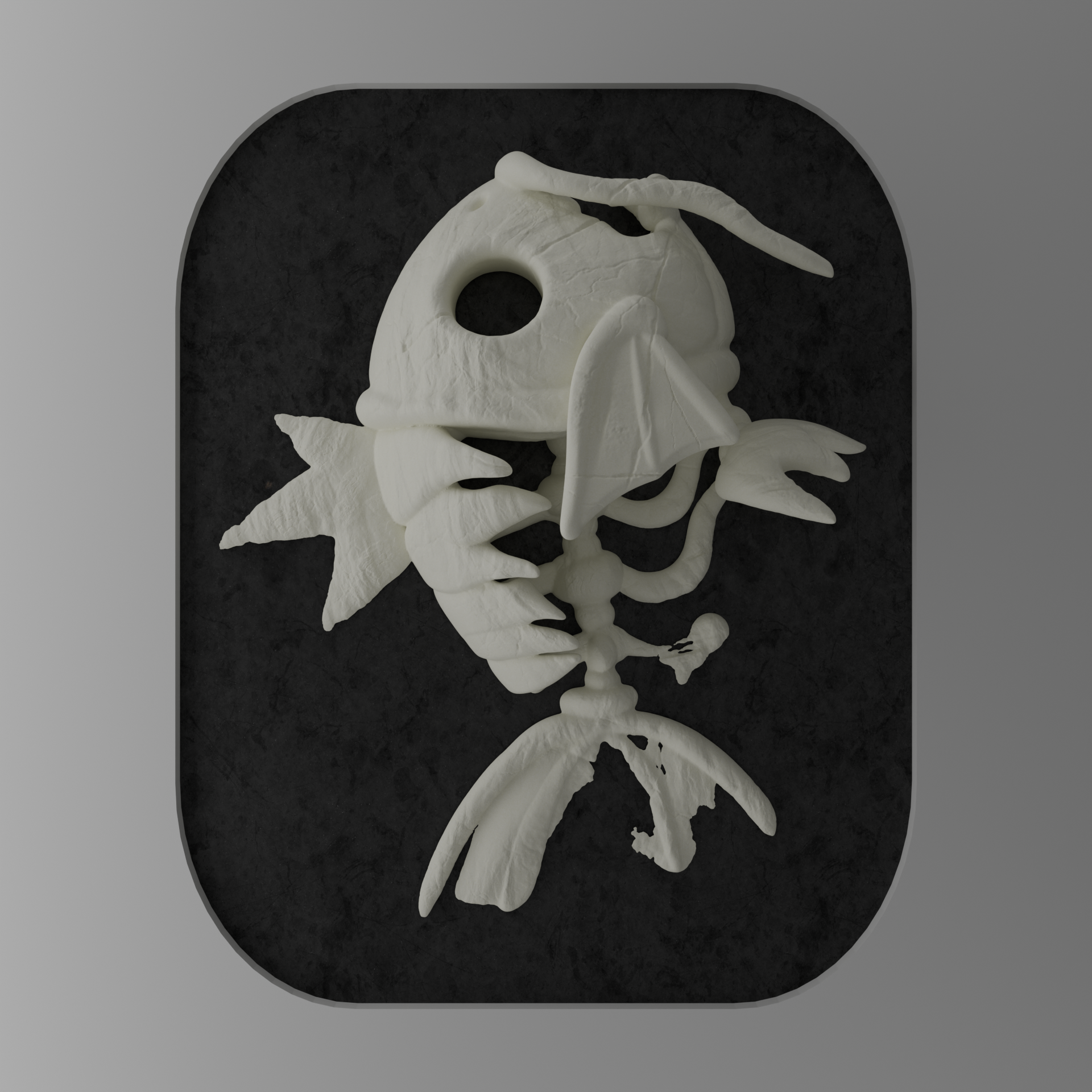 kráneo de Magikarp con su número de Pokédex, impreso en PLA, diseñada para anclarse al marco mediante 6 imanes incluidos.