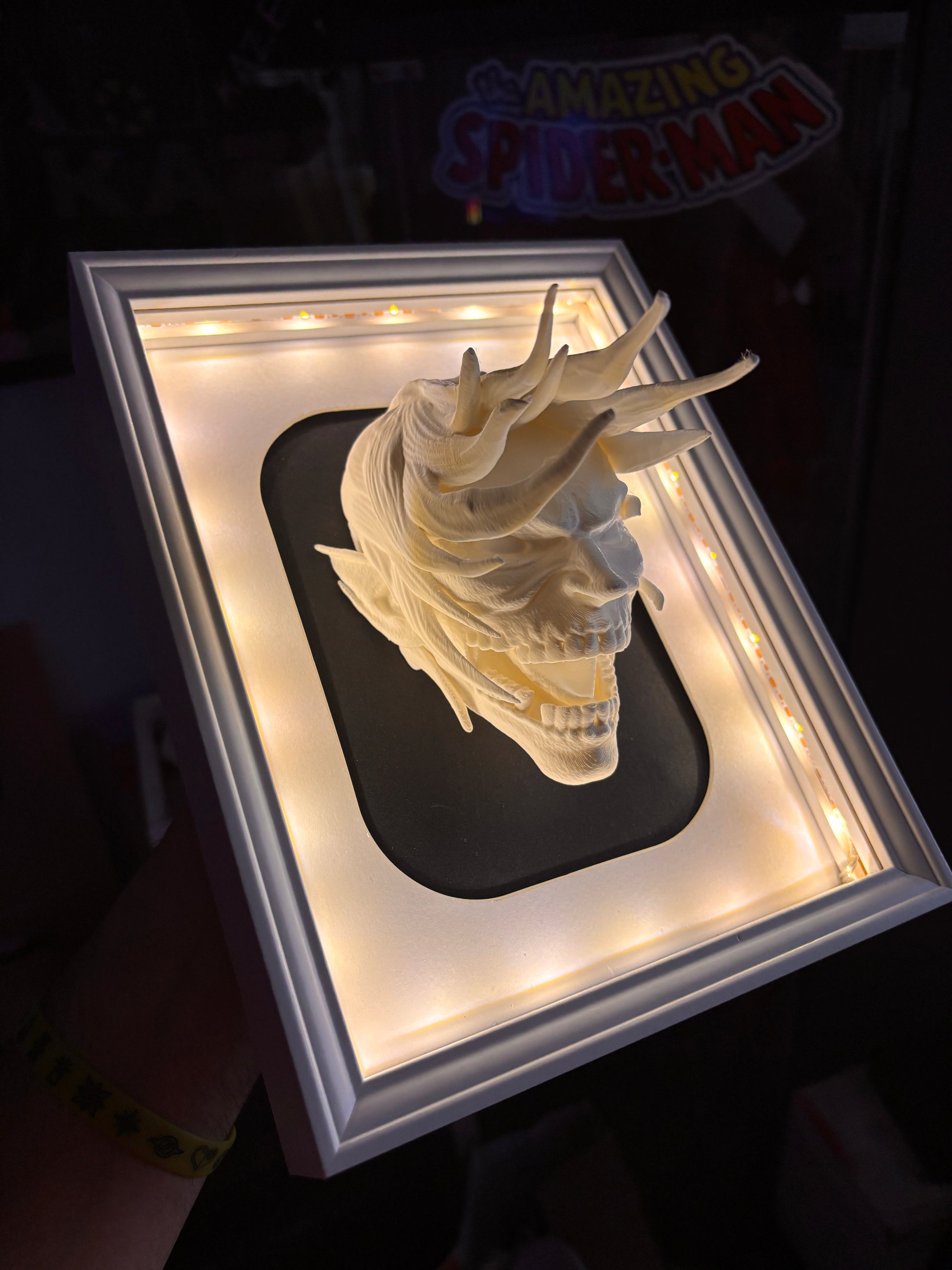 Kráneo de TITÁN, impreso en PLA, diseñado para anclarse al marco mediante 6 imanes incluidos.