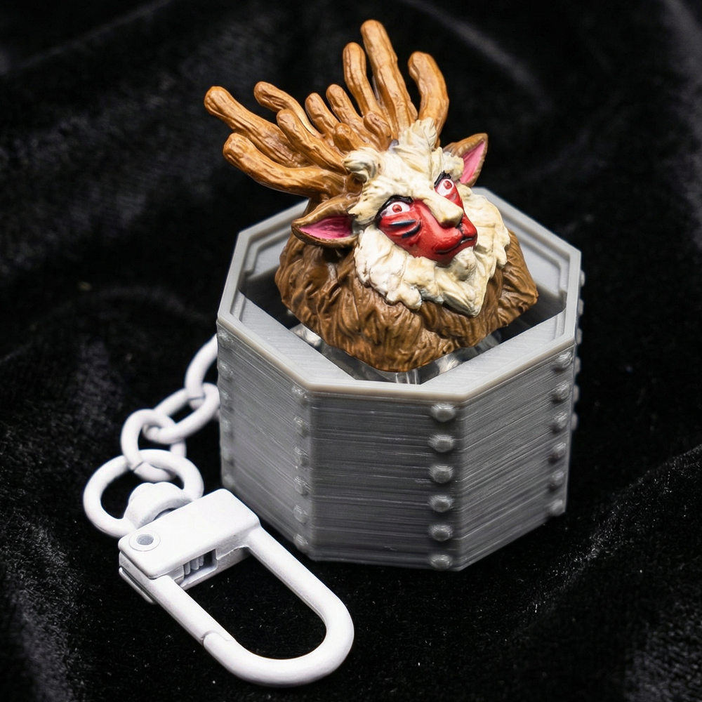 Descubre esta tecla custom de ESPÍRITU DEL BOSQUE inspirada en el icónico árbol del bosque, con base imitando el contenedor donde se guardó su cabeza en la película, diseñada para fans de Studio Ghlbli, teclados mecánicos y coleccionismo premium.